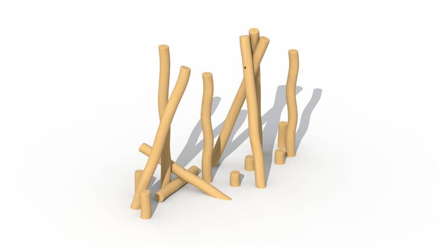 Het palenbos is een uitdagend hindernissenparcours voor kinderen van 4 tot 12 jaar. Dit palenbos is een combinatie van 15 rechtopstaande palen, dwarsliggende palen en stappaaltjes. De palen staan kris kras door elkaar als een uiteengevallen mikadospel en de speciale kromming van de robinia palen geeft het speelterrein een natuurlijke uitstraling. Alle metalen onderdelen zijn roestvrij voorbehandeld en alle moeren en bouten worden volledig afgeschermd. De constructie wordt rechtstreeks met beton in de grond verankerd.Een palenbos is samengesteld uit een aantal geschuurde palen met verschillende lengtes en diktes en biedt tal van mogelijkheden om een natuurlijk parcours te creëren.