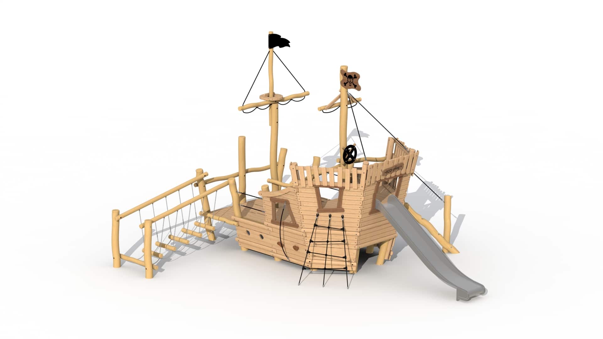 Een speeltoestel in de vorm van een piratenschip voor kinderen van 4 tot 12 jaar. De Albatros (het achtersteven) is opgebouwd uit een stuurwiel uit HDPE polyethyleen, een klimmast met piratenvlag, een inox glijbaan, een klimnet, een scheepsruim met doorklimgaten,…