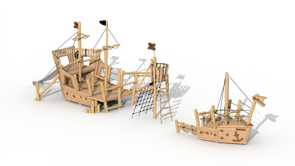 Ahoy daar! Welkom aan boord van het piratenschip Albatros, een avontuurlijk speeltoestel voor kleine piraten van 2 tot 12 jaar! Dit schip zit boordevol plezier, met een drakenkop op het voorsteven, klimnetten, een doorkruipopening, een touwladder, vlaggen, stuurwiel en zelfs schilden. Het achtersteven, met een RVS glijbaan, een scheepsruim met doorklimgaten, klimbomen, klimgrepen en een wiebelbrug zorgt voor een spannend avontuur op zee. Met staalkabelverstevigde touwen, padoukhouten klimgrepen, dikke houten sporten in de klimladder, is dit schip stevig en veilig gebouwd bent u verzekerd van een schip dat tegen een stormachtig speelkwartier bestand is. Het kraaiennest is gemaakt van metalen buizen, en de kruisverbinding is verstevigd met een stalen U-profiel. Stap aan boord en laat de zeeheldenpret beginnen!