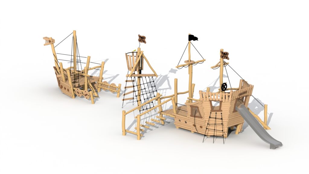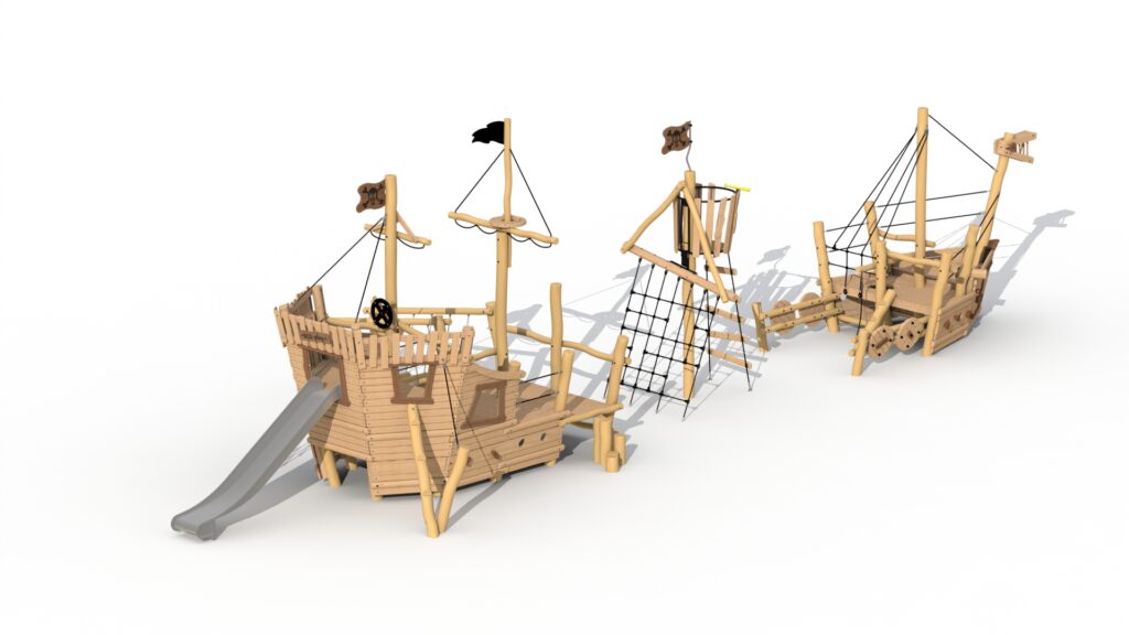 Ahoy daar! Welkom aan boord van het piratenschip Albatros, een avontuurlijk speeltoestel voor kleine piraten van 2 tot 12 jaar! Dit schip zit boordevol plezier, met een drakenkop op het voorsteven, klimnetten, een doorkruipopening, een touwladder, vlaggen, stuurwiel en zelfs schilden. Het achtersteven, met een RVS glijbaan, een scheepsruim met doorklimgaten, klimbomen, klimgrepen en een wiebelbrug zorgt voor een spannend avontuur op zee. Met staalkabelverstevigde touwen, padoukhouten klimgrepen, dikke houten sporten in de klimladder, is dit schip stevig en veilig gebouwd bent u verzekerd van een schip dat tegen een stormachtig speelkwartier bestand is. Het kraaiennest is gemaakt van metalen buizen, en de kruisverbinding is verstevigd met een stalen U-profiel. Stap aan boord en laat de zeeheldenpret beginnen!