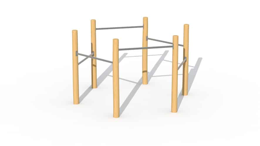 Zeshoekig houten duikelrek in robinia met 6 rekstokken voor kinderen vanaf 6 jaar. De kinderen kunnen hier naar hartenlust samen hangen en draaien. De behendigheid wordt hier echt op de proef gesteld! Er is een extra voorziening aanwezig tegen het…