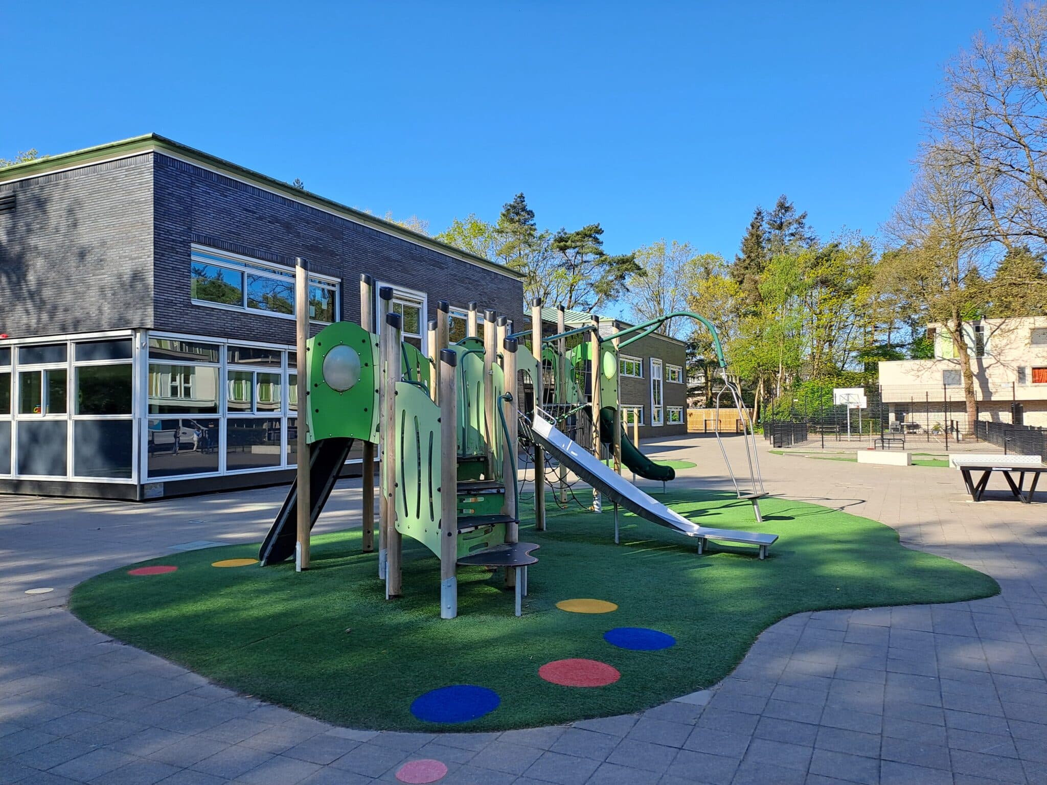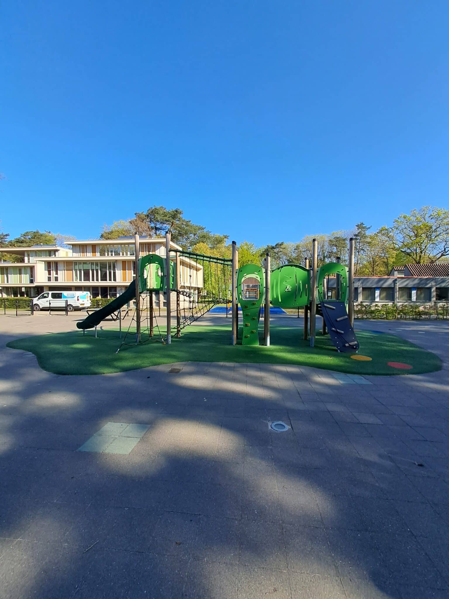 Bij deze school is ervoor gekozen om de speelcombinatie in de groene kleur uit te voeren. Dit in verband met het voorkomen van overprikkeling. Het toestel is ook in andere kleurcombinaties te verkrijgen, zoals bijvoorbeeld blauw/oranje.