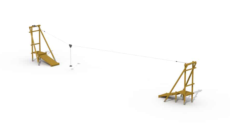 Speeltoestel voor kinderen van 6 tot 15 jaar. Deze houten kabelbaan is een leuke manier om een lange afstand te overbruggen. De kabelbaan bestaat uit 2 startplatformen. De kinderen gaan bovenaan op het startplatform staan en zetten zich op de…