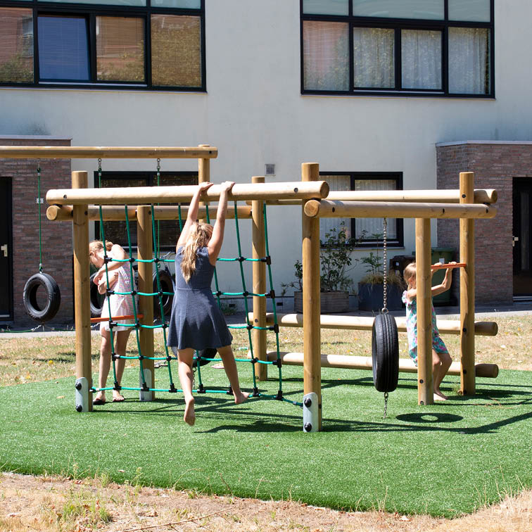 De Mini Playframe is een klimtoestel dat kinderen uitdaagt om het beste uit zichzelf te halen. Op de Mini Playframe worden verschillende vaardigheden beoefend en verder ontwikkeld, zoals de coördinatie, samenspelen, behendigheid en het inschattingsvermogen.
