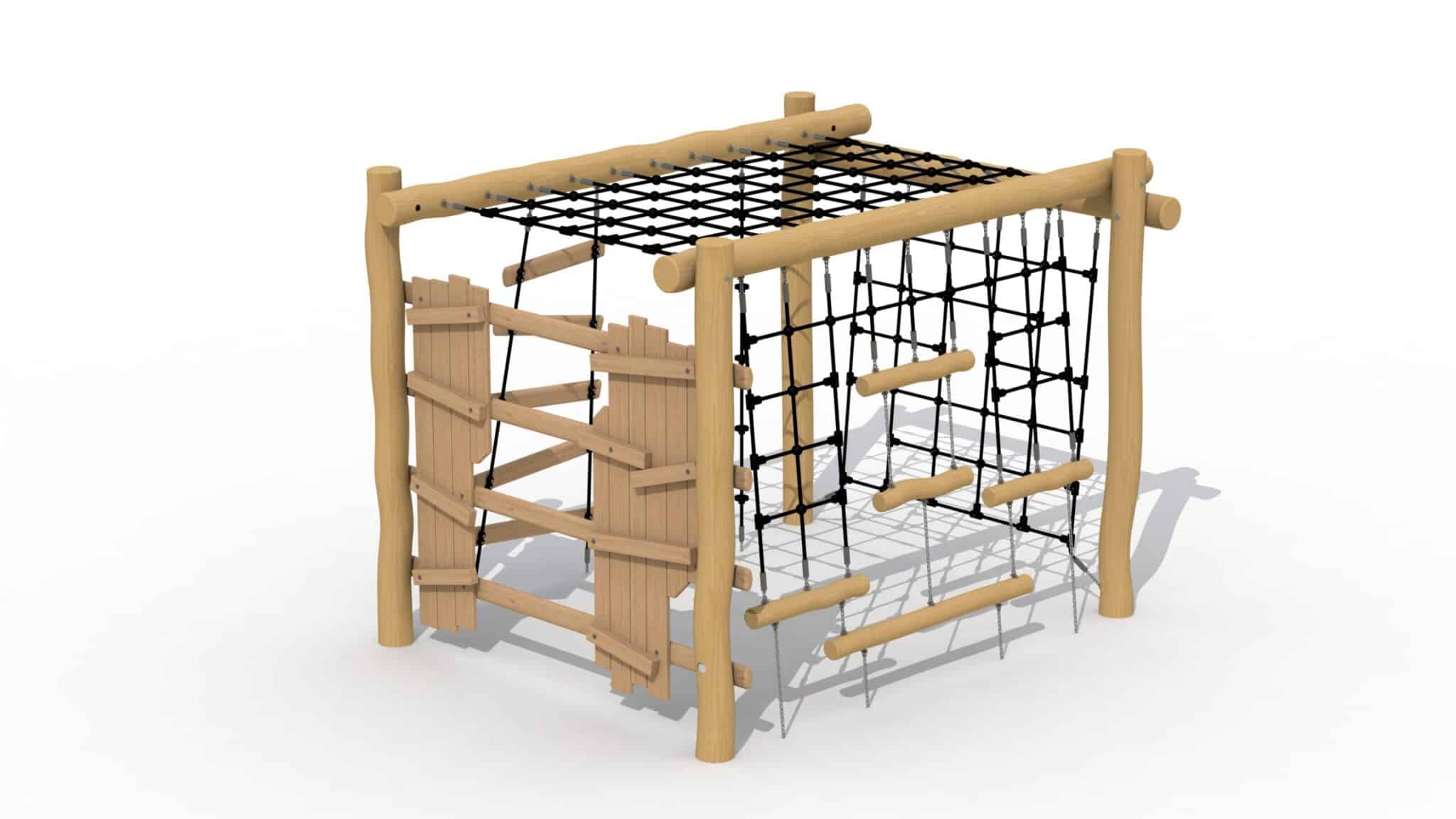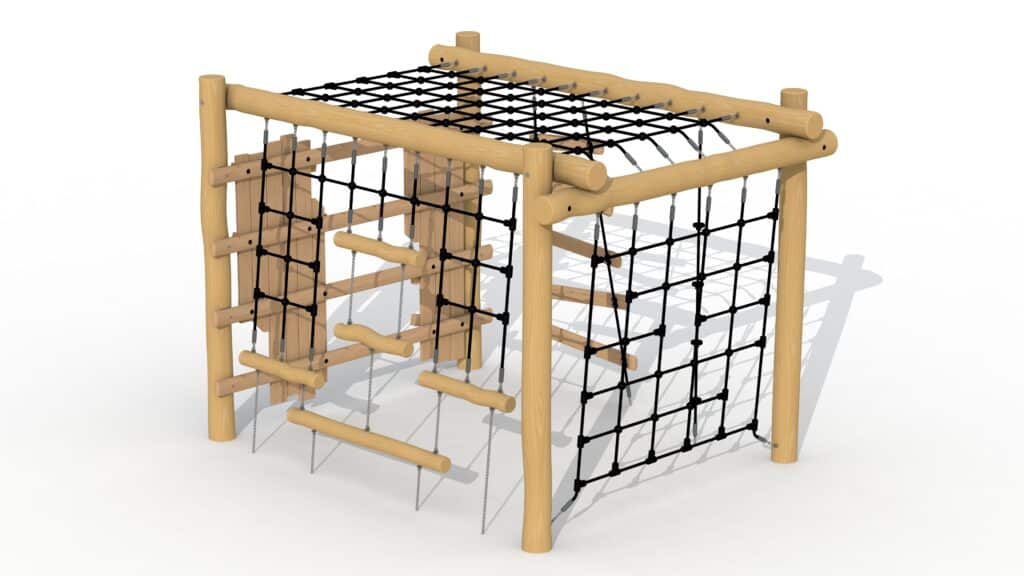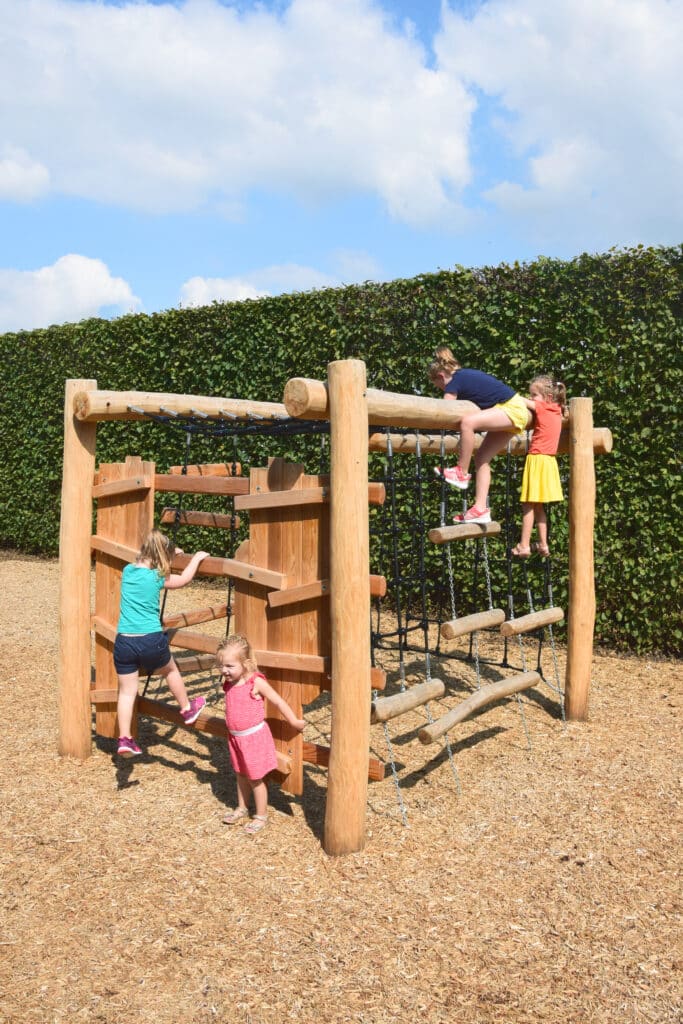 Een klimnet, touwladder en klimtouw, maar ook een stoere verstop-/ klimmuur