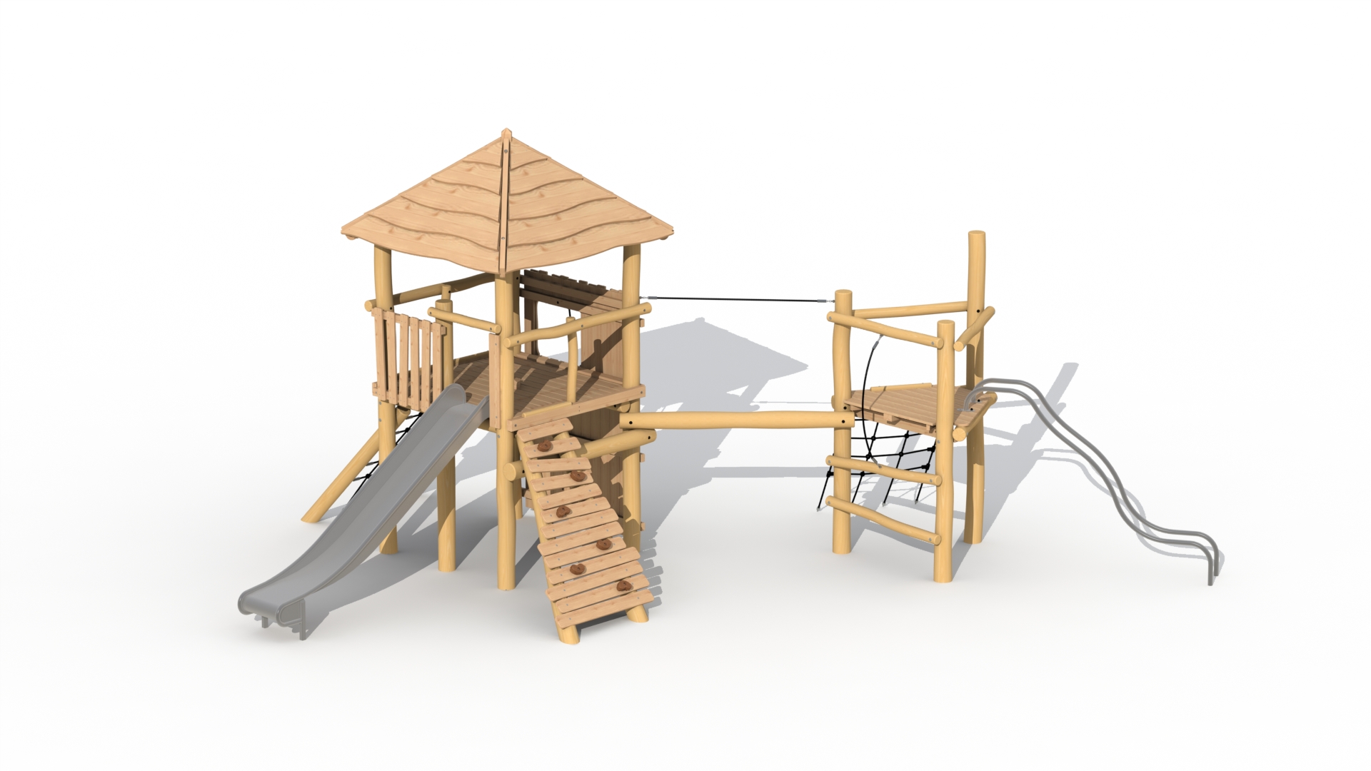 Tovertoren met Dak, RVS Glijbanen en Loopbalk