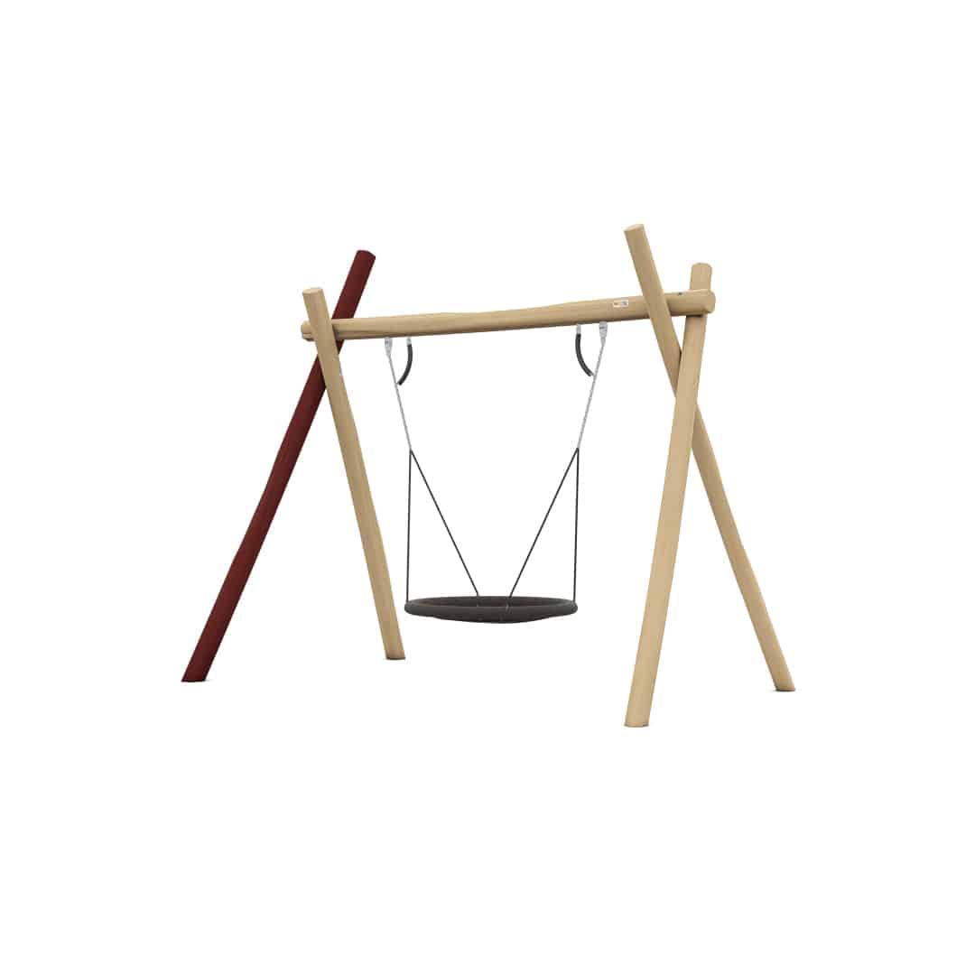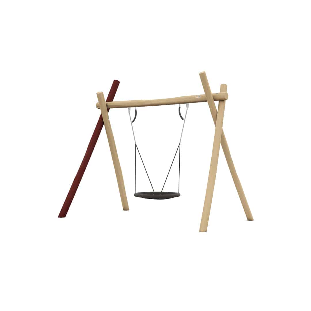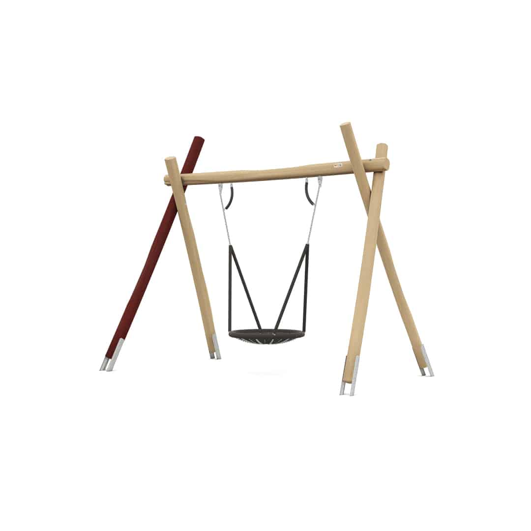 Robinia mandschommel met gewone robinia palen. Optioneel leverbaar met een extra stevige mand.