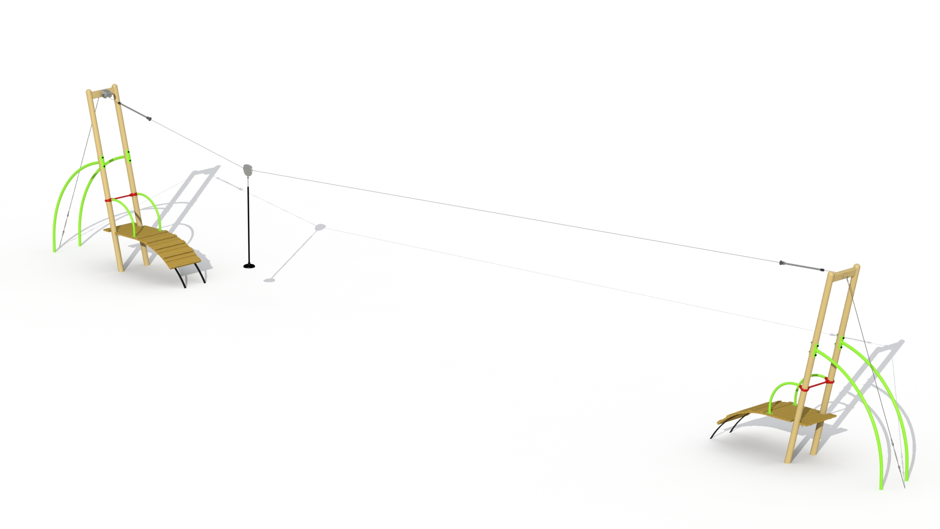 Speeltoestel voor kinderen van 6 tot 15 jaar. Deze metalen kabelbaan is een leuke manier om een lange afstand te overbruggen. De kabelbaan bestaat uit 2 startplatformen. De kinderen gaan bovenaan op het startplatform staan en zetten zich op de…