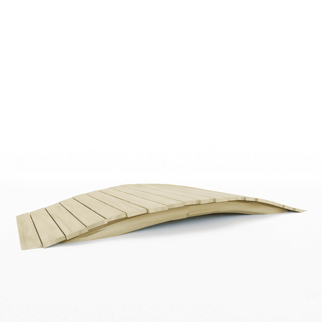 Natuur loopbrug gemaakt uit robinia hout, zonder reling.