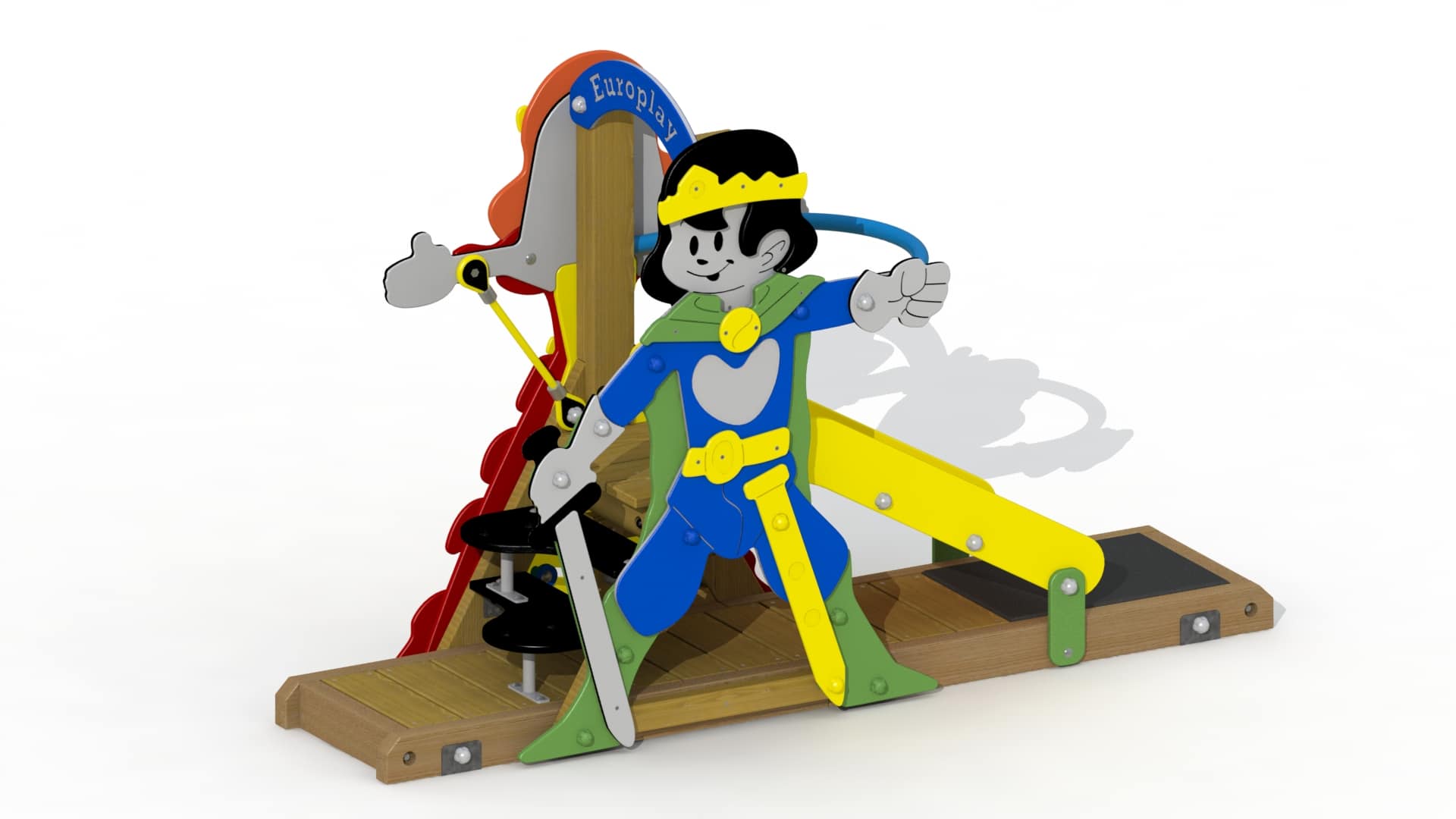 Vrijstaand kleurrijk speeltoestel voor kinderen van 1 tot 3 jaar. Het toestel heeft twee zijden uit HDPE polyethyleen. De loopwand heeft twee zijden uit HDPE polyethyleen in de vorm van een Prins en een Prinses. Het toestel is beklimbaar via een trap, vervaardigd met kunststof treden. Alle metaalonderdelen zijn roestvrij voorbehandeld en alle moeren en bouten zijn volledig afgeschermd met kunststof bloemvormige afdekdoppen. Dit avontuurlijk toestel biedt kinderen diverse speelwaarden aan. De kinderen kunnen naar hartelust naar beneden glijden en zetten dankzij het kindvriendelijke trapje of de loopwand hun eerste stapjes om te leren klimmen. De echte avonturiers kunnen hun weg onderaan verderzetten via de doorkruiptunnel.