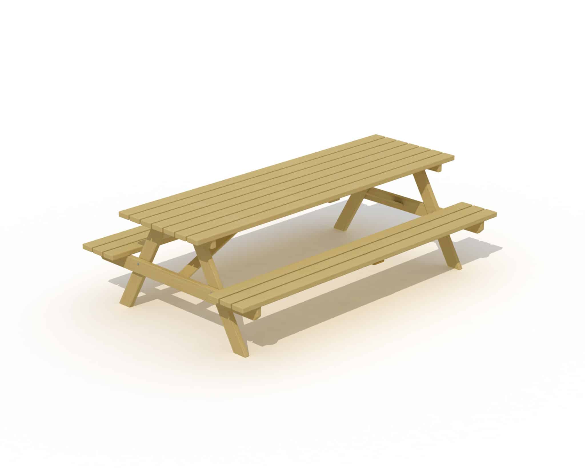 Deze stevige en mooi afgewerkte picknicktafels zijn gemonteerd met houtbouten en onzichtbaar geschroefd. Gedeeltelijk voorgemonteerd.De vrijstaande modellen kunnen aan de grond verankerd worden met 4 hoekijzers of in de grond worden bevestigd met 4 grondankers. Deze hoekijzers (ref. A003) en grondankers (ref. A004) moeten apart besteld worden.
