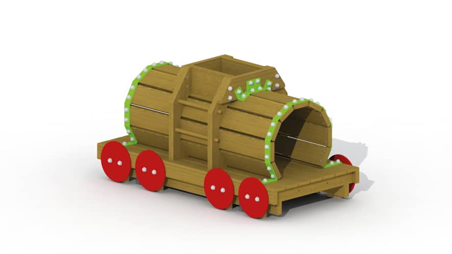 Tankwagon van de trein uitgevoerd als kruiptunnel met middenin een kijkgat en klimladder. De bovenconstructie van de tankwagon is volledig uitgevoerd in lariks, de onderconstructie in eik. Deze wagon wordt voorgemonteerd geleverd. Door middel van een verbindingsbruggetje (T500) kan dit…