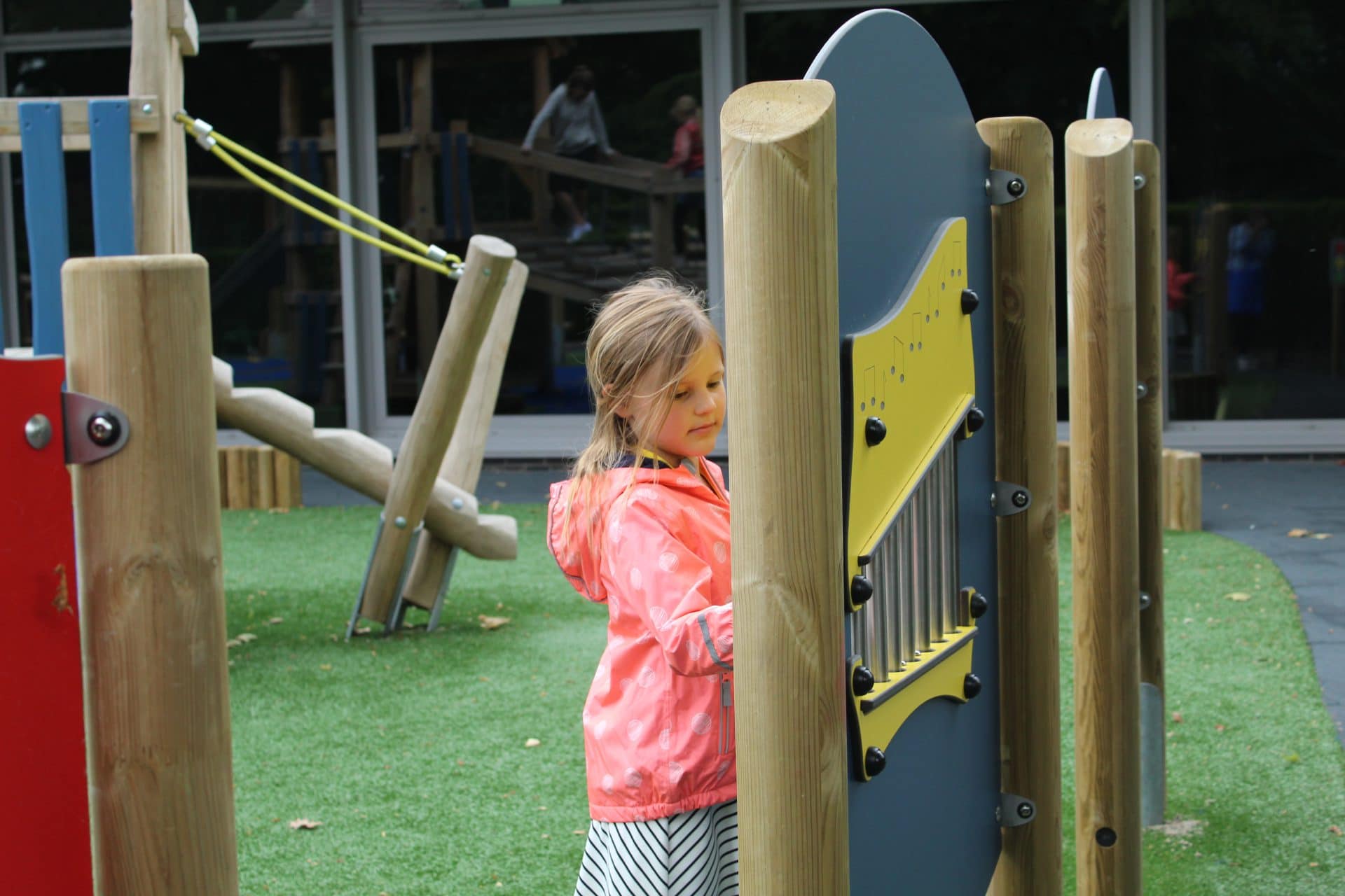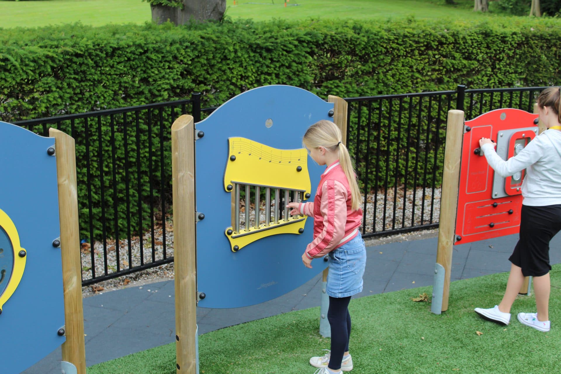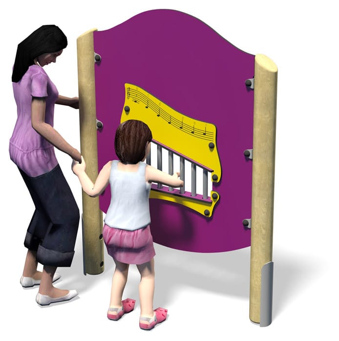 Kinderen kunnen op de Musical Play Panel prachtige muziek maken. Zo leren ze verschillende tonen en klanken kennen. Dit paneel is te verkrijgen met houten of RVS staanders.