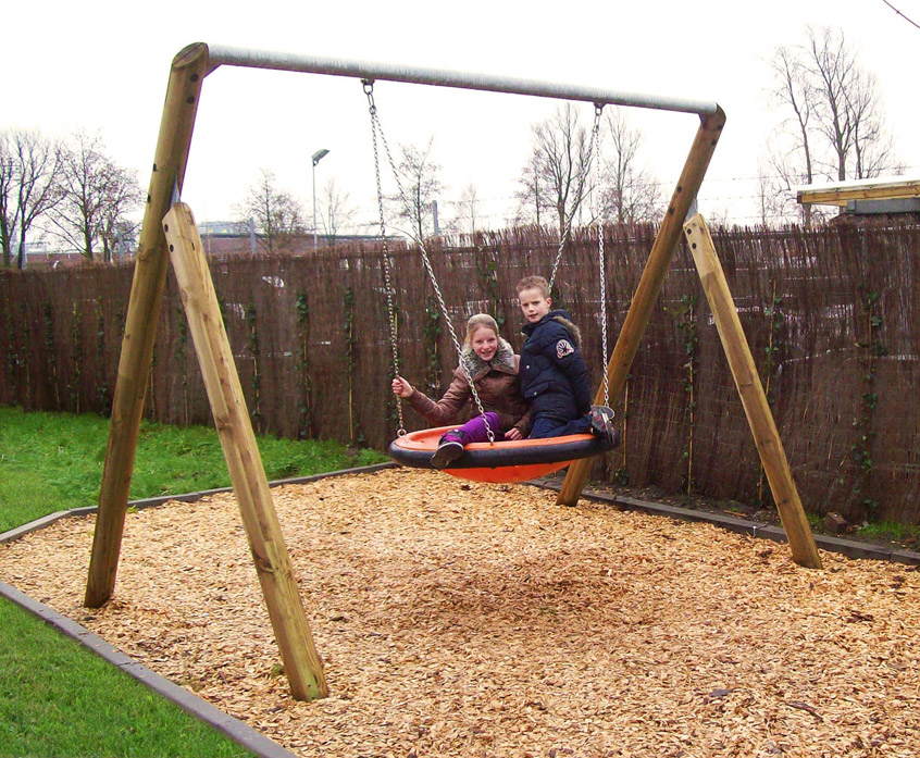 In de Team Swing kunnen kinderen in een vogelnest samen plezier beleven. Een Team Swing stimuleert de samenwerking tussen kinderen, omdat ze samen hoger en hoger kunnen komen. Daardoor trainen ze tegelijk met het schommelen hun sociale vaardigheden. Het vogelnest kunt u personaliseren en aanpassen aan uw speelplaats, want u heeft keuze uit 2 verschillende kleuren nesten!