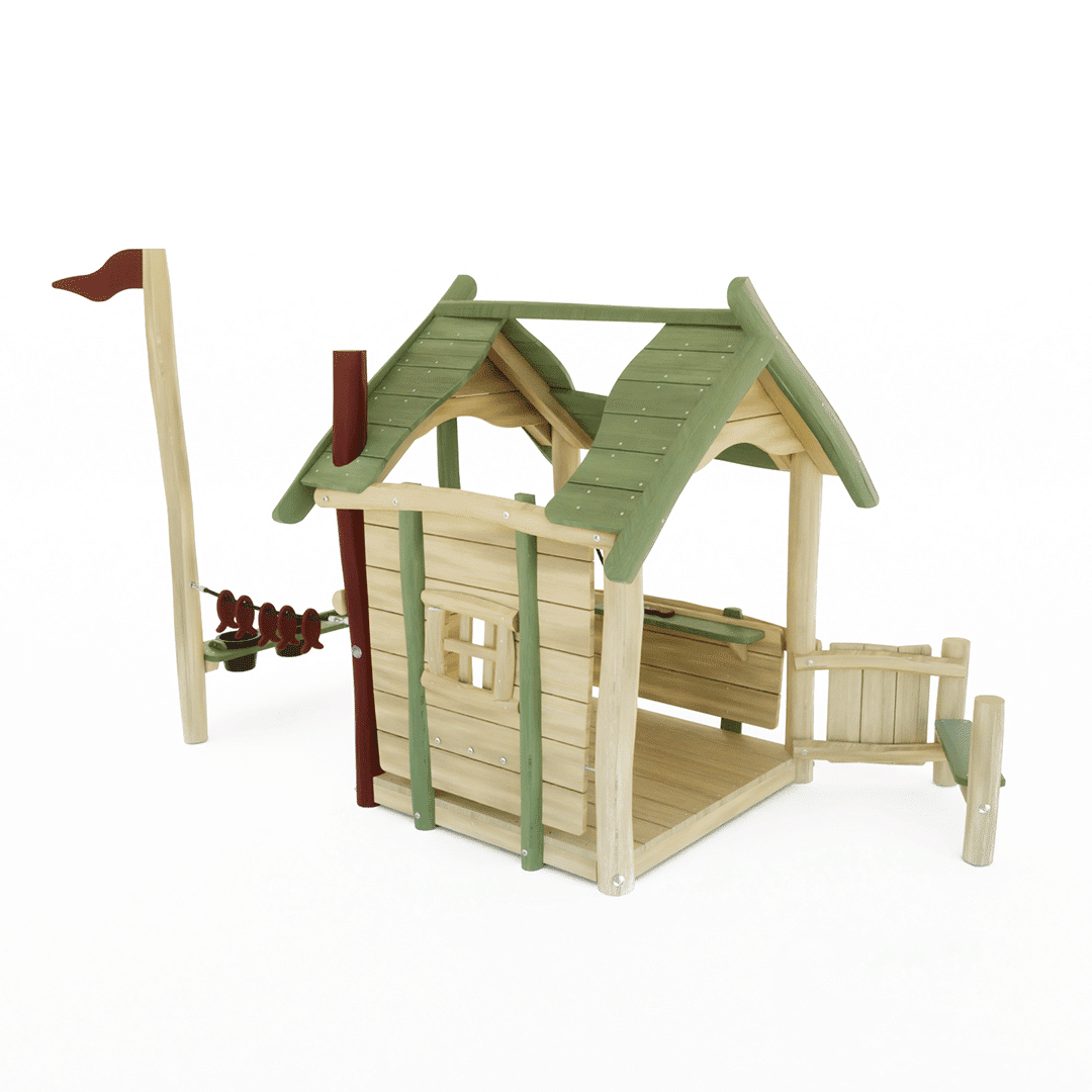 Robinia speelhuis Winkelstraat. Naast het speelhuis kunnen kinderen ook spelen met de zandspeelplaats en bij de ijssalon. Wie gaat er mee een ijsje eten?