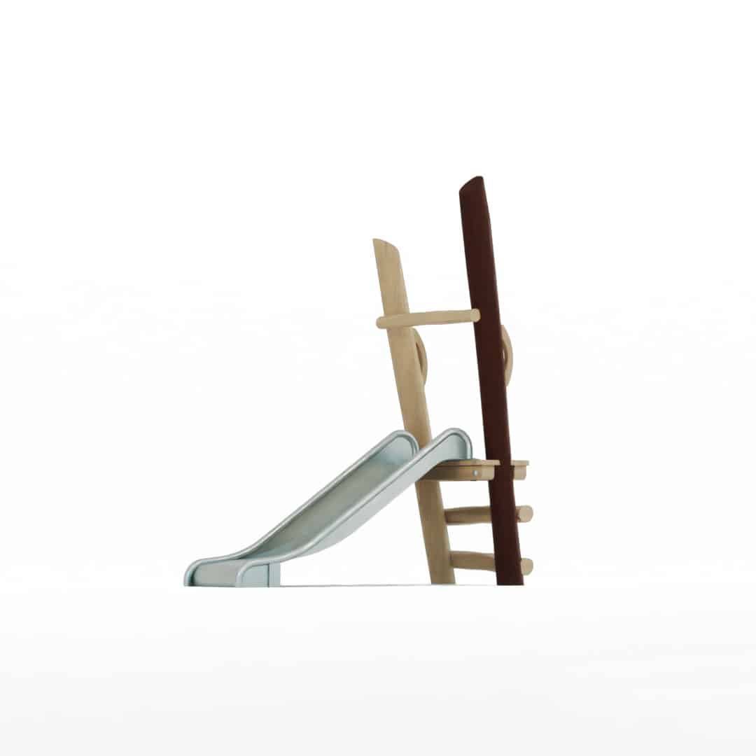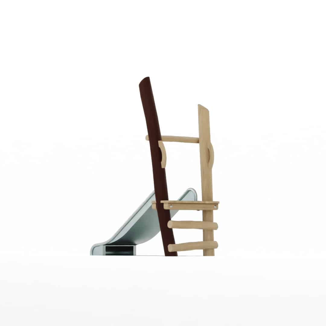Vrijstaande RVS glijbaan met robinia trap voor kinderen van 3 tot 6 jaar. Hoogte 60 cm.