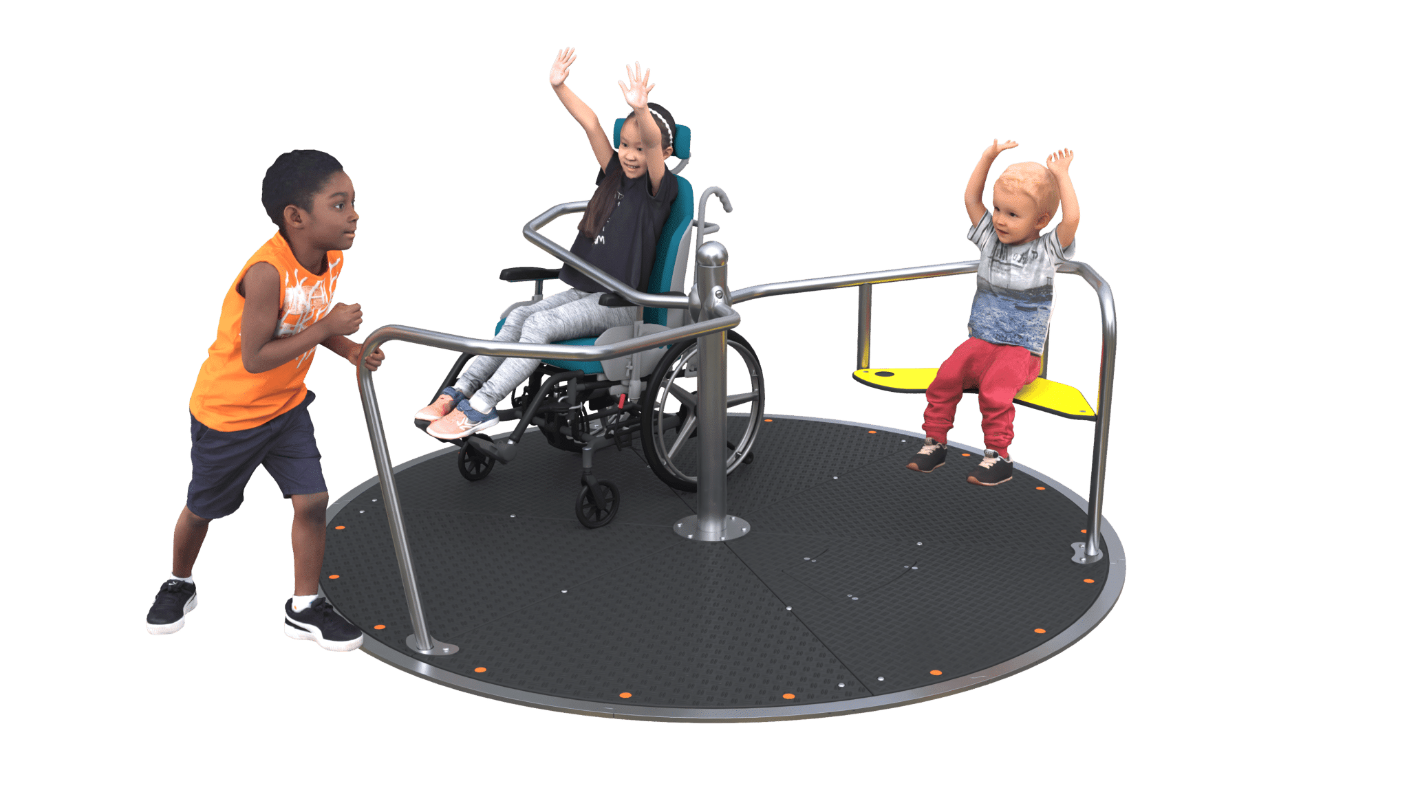 “Na de zandbak wil je natuurlijk de speelplaats verder ontdekken. Dit geldt ook voor kinderen met een beperking. Hoe fijn is het dan als je net als iedereen lekker kunt meedraaien met de draaimolen? Het fijne van de Inclusive Orbit van Van Ee Speel is dat ook grotere kinderen ervan genieten en ook (groot)ouders met én zonder beperking kunnen meedraaien of duwen. Het is echt een toestel om samen mee te spelen. Laatst stonden en draaiden er wel 16 kinderen op, inclusief een kind in een rolstoel.”